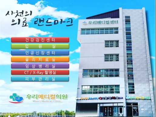 더 나은 건강을 위해 우리메디컬의원으로 방문해주세요! 대기 시간이나 상담이 필요한 경우 전화를 통해 예약하실 수 있습니다. 사천시 사천읍 진삼로 1481에 위치한 우리메디컬빌딩에서 여러분을 기다립니다.